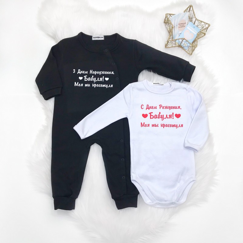 Чоловічки сліпи компбінезони на кнопках новонародженим з будь-якими над написами на замовлення ви можете купити в нашому магазині українського виробника "HappyKids".