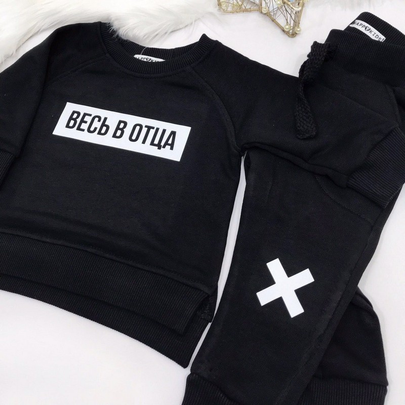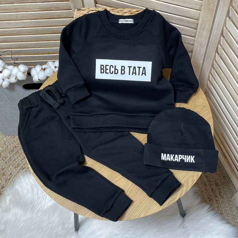 Базовий якісний бавняний світшот малюку з оригінальним написом Весь у БАТЬКА - під замовлення