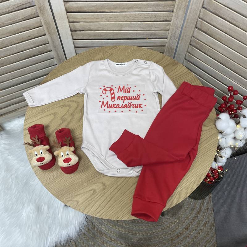 Святковий комплект для новонародженого хлопчика з написом "Мій перший Миколайчик"