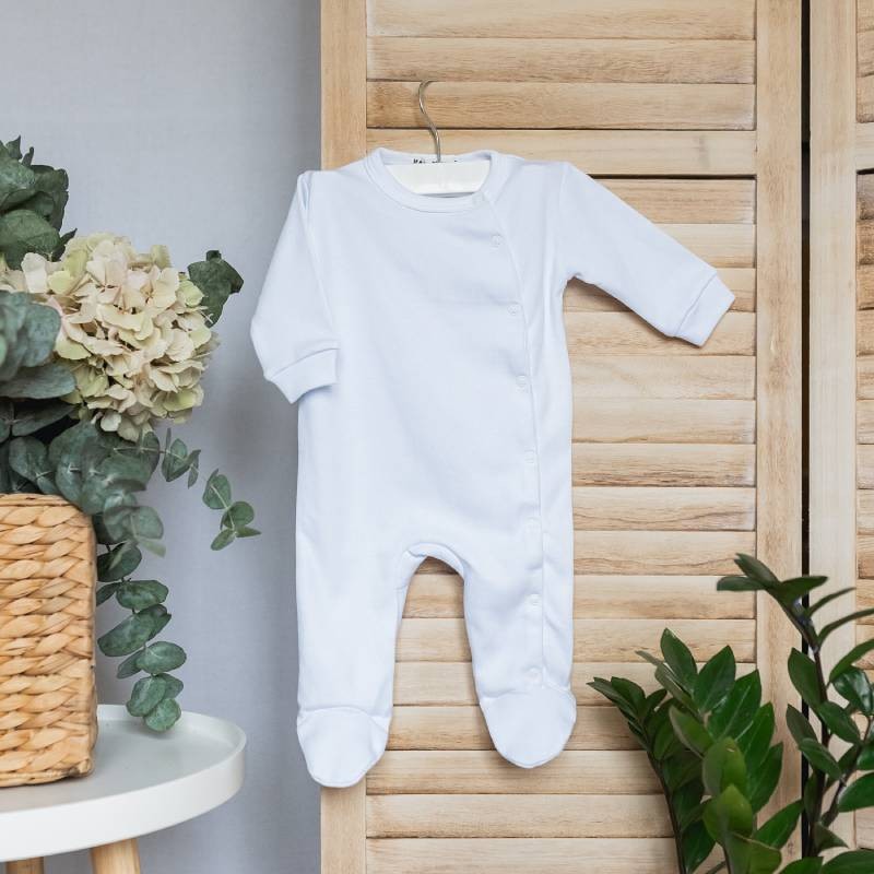 Білий базовий сліп-чоловічок – це ідеальний вибір для перших місяців життя малюка. Він поєднує в собі комфорт, практичність і стильний мінімалістичний дизайн. Виготовлений із 100% натуральної бавовни, цей сліп подарує вашому малюку ніжність і затишок протягом усього дня.