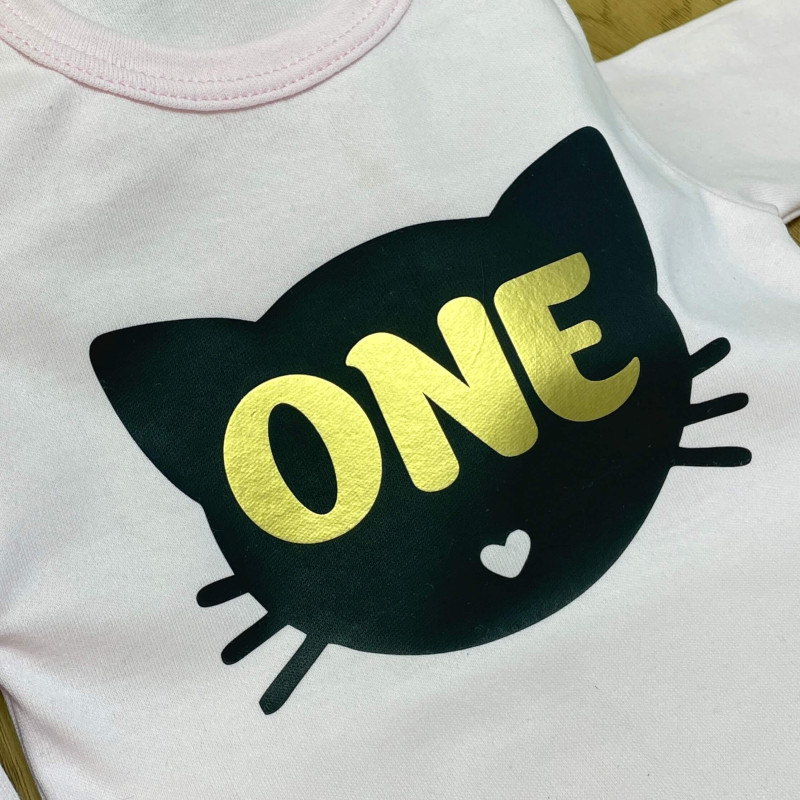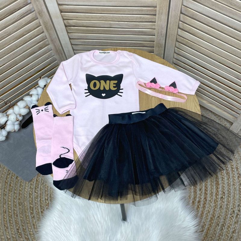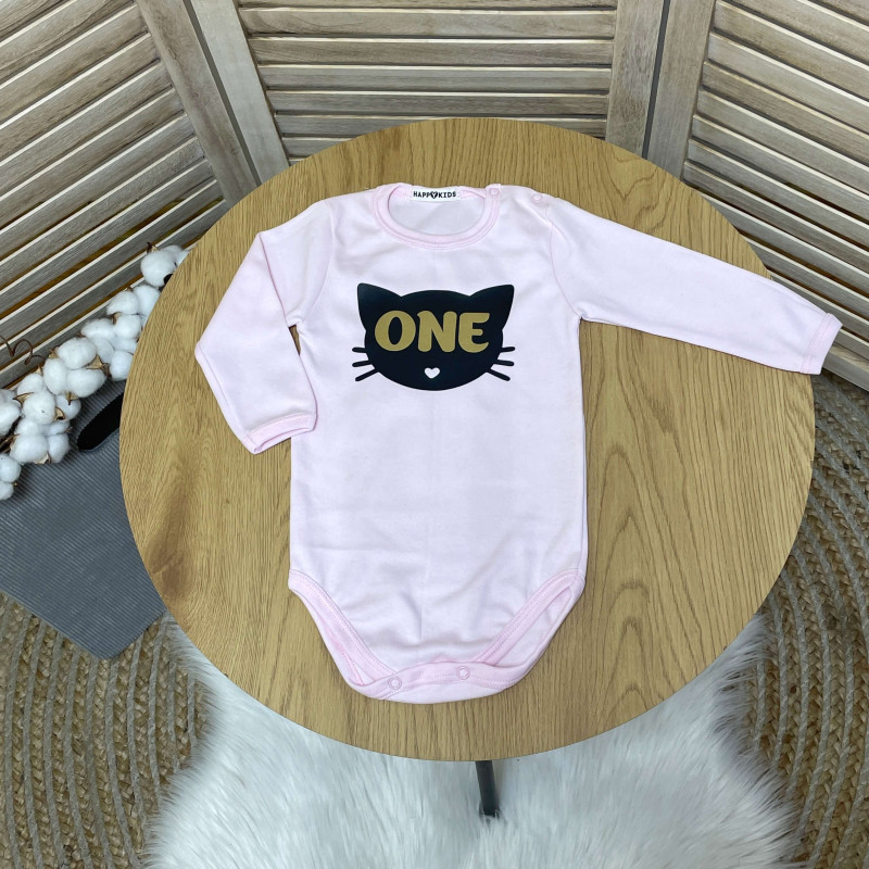 Боді дівчинці з ONE з кицею на перший день народження