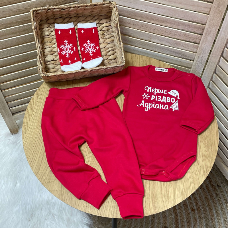 Замовте боді для хлопчика з іменем дитини і написом "Перше Різдво" вже сьогодні та зробіть це Різдво ще особистішим та незабутнім для вашої родини.