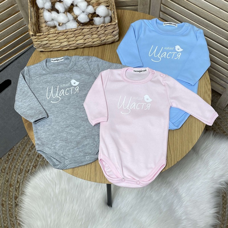 Боді для новонародженого з оригінальним написом "Наше щастя" - це чудовий подарунок для малюка та його батьків. Виготовлений з м'якого та приємного на дотик матеріалу - 100% бавовни, що забезпечує комфорт малюку під час носіння.