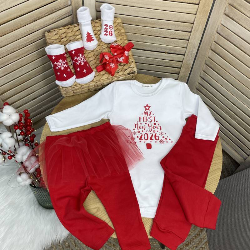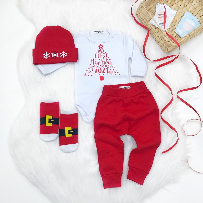 Нарядний універсальний боді підійде хлопчику та дівчинці. Доповнюй будь-якими аксесуарами на свій смак і створювай свій неповторний новорічний образ.