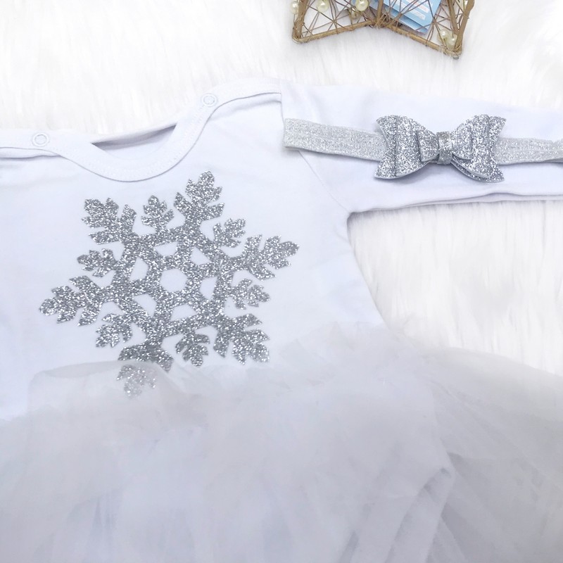 Нехай новорічна чарівність перетвориться в дійсність для вашої дівчинки з нашою Боді-сукнею "Сніжинка" гліттер.