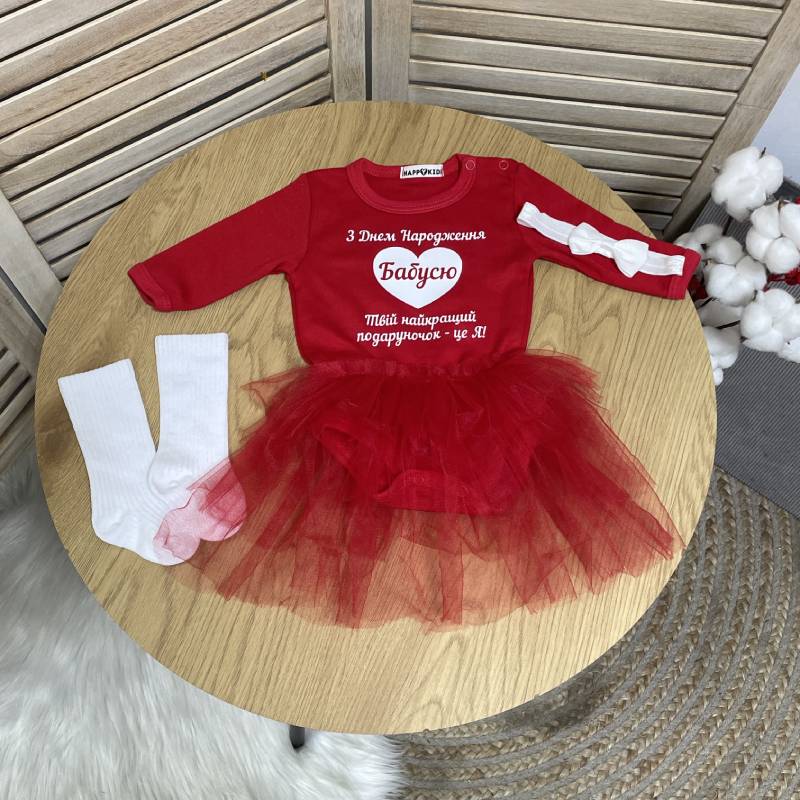 Переваги: ідеальна ідея подарунка бабусі на День народження, ніжний та зручний фасон — дитині комфортно весь день, святковий дизайн створює теплі емоції та красиві фото, натуральна тканина, яка не викликає подразнень, універсальна річ для святкування та пам’ятних моментів
