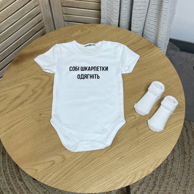 Боді з прикольним написом "Собі шкарпетки одягніть"