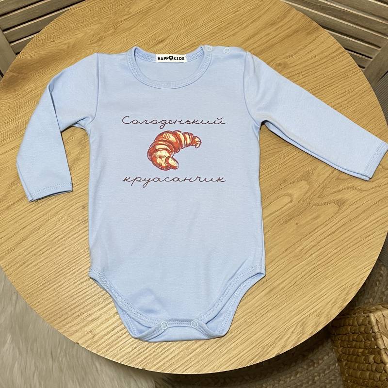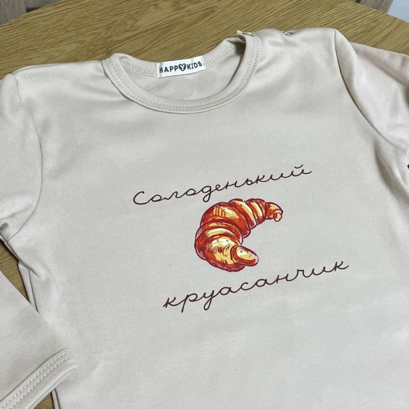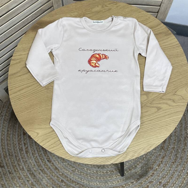 Дизайн: милий принт із написом "Солоденький круасанчик", виконаний у теплих відтінках; за бажанням можна додати ім’я дитини для персоналізації