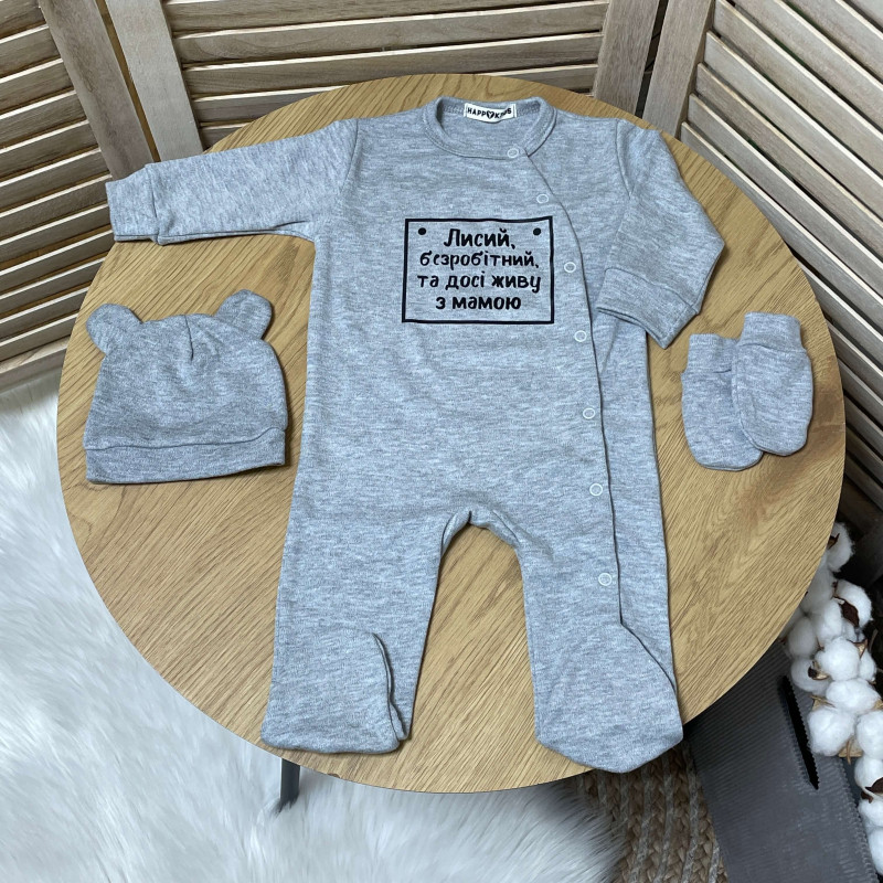Людини сліпи компбінезони на кнопочках новонародженим з будь-якими над написами на замовлення ви можете купити в нашому магазині українського виробника "HappyKids".