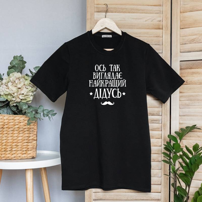 Шукаєте ідеальний подарунок для дідуся? Чоловіча футболка з написом "Ось так виглядає найкращий дідусь" і зображенням стильних вусів стане чудовим вибором! Це не просто одяг, а спосіб показати любов і повагу до найріднішої людини.