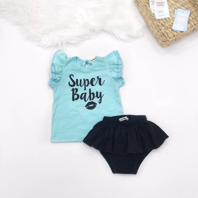 Прекрасно поєднується з трусиками-блумерами або лосінами також можна підібрати бантики та шкарпетки.