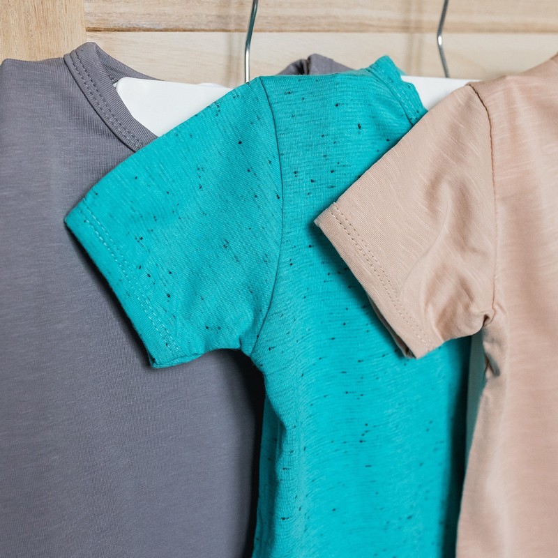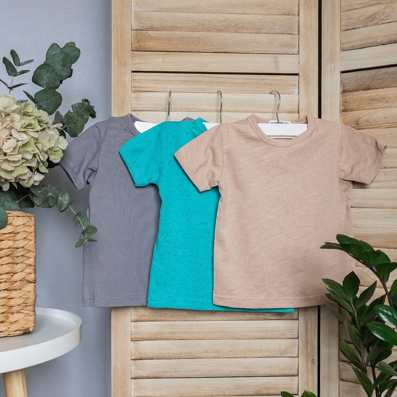 Базова дитяча футболка з коротким рукавом – ідеальне рішення для щоденного носіння. Завдяки кнопочкам на плечі її легко вдягати та знімати, що особливо важливо для малюків. Однотонний дизайн робить цю футболку універсальною – пасує до будь-якого одягу.