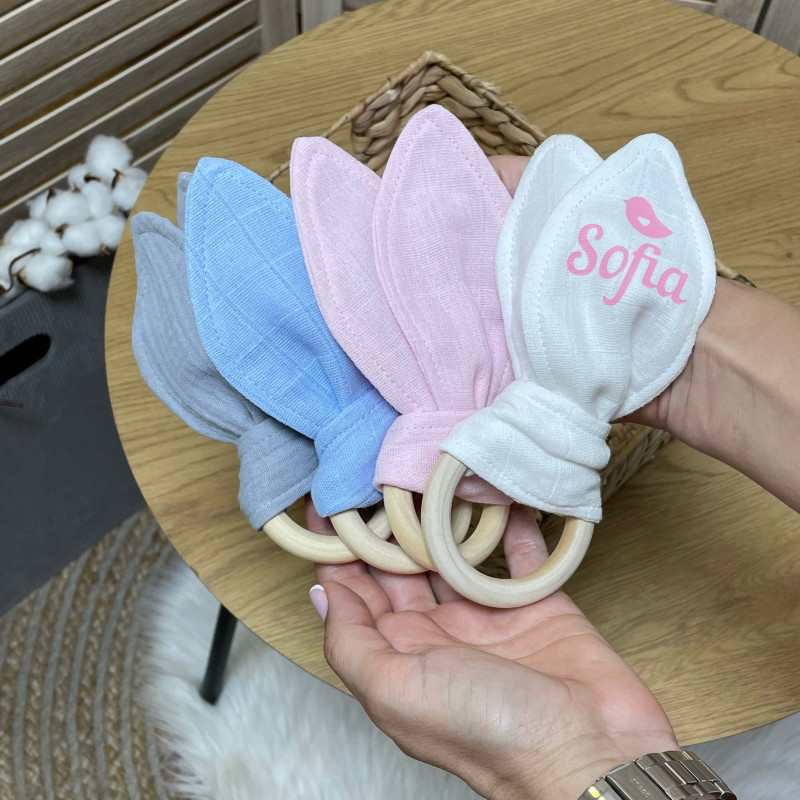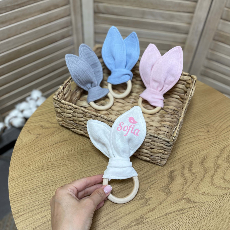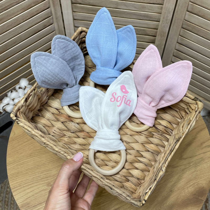 Гризунець для немовляти іменний вушка з мусліну