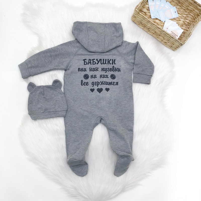 Комбінезон дитячий з написом "Бабусі як гудзики - на них все тримається"