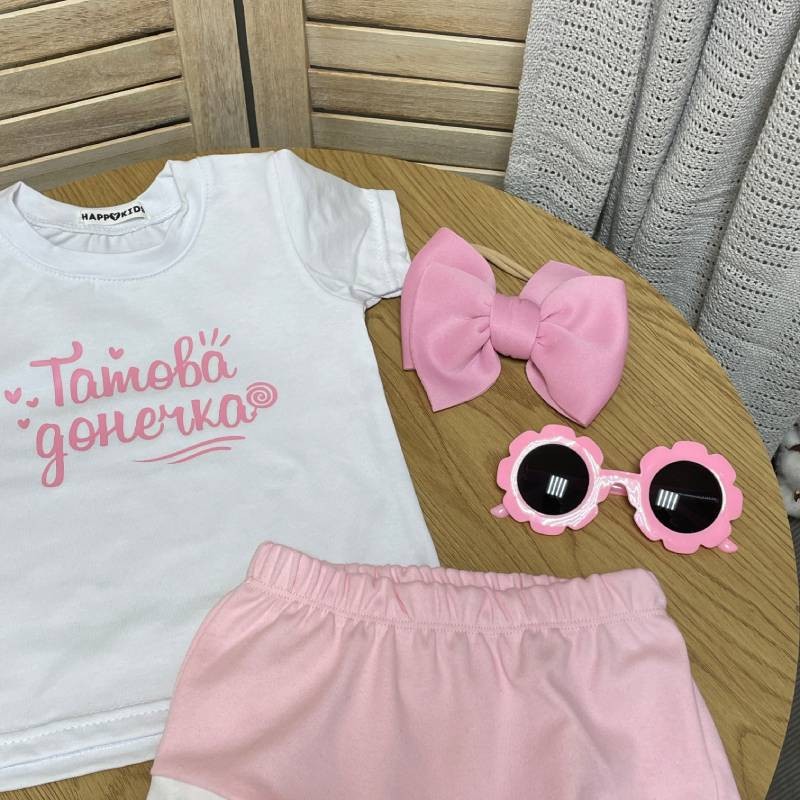 Шукаєте стильний та комфортний літній одяг для дівчинки? Представляємо яскравий та ніжний комплект "Татова донечка" – ідеальне поєднання зручності й чарівного дизайну. Цей комплект стане улюбленим нарядом вашої малечі в теплу пору року! До складу входить мила футболочка з написом "Татова донечка" та легкі блумери для дівчинки, які забезпечують максимальний комфорт під час руху. Ідеальний варіант як для прогулянок, так і для фотосесій або свят.