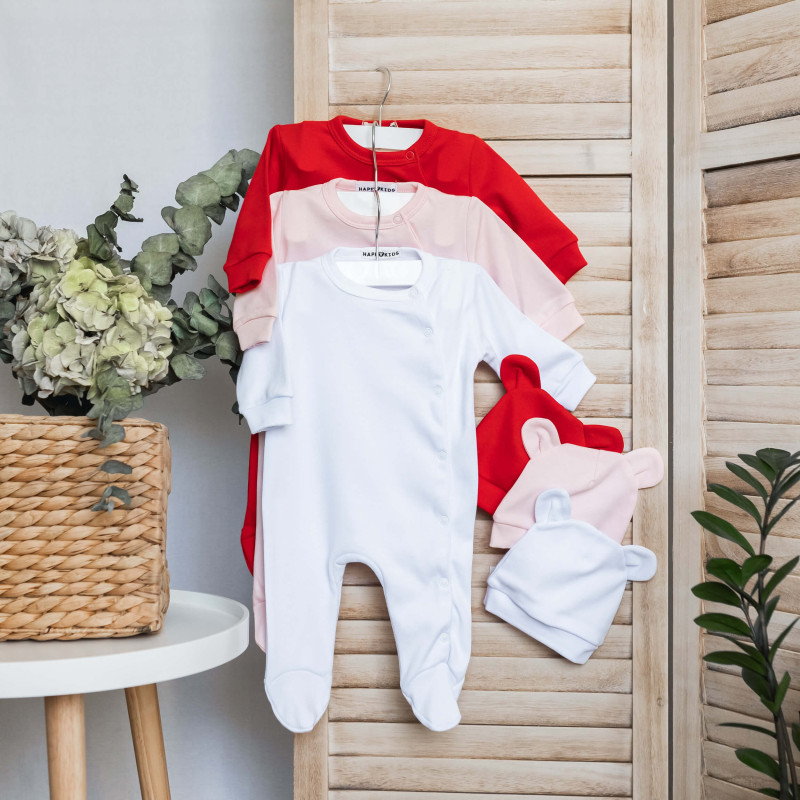 Комплект новонародженим сліп з шапочкою 3шт. білий/рожевий/червоний