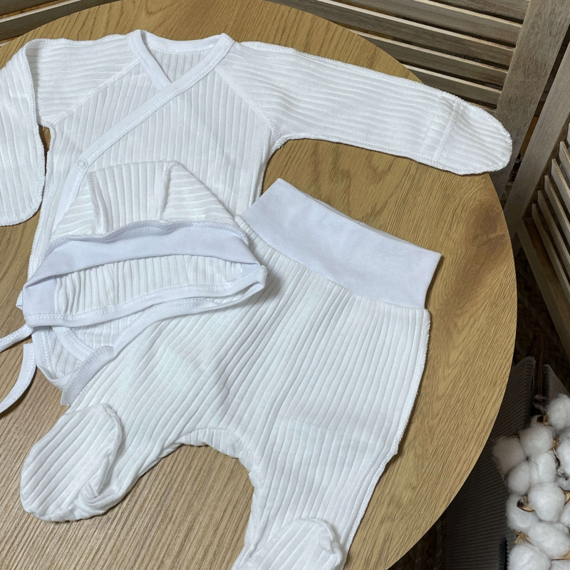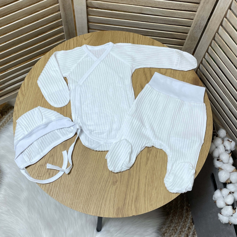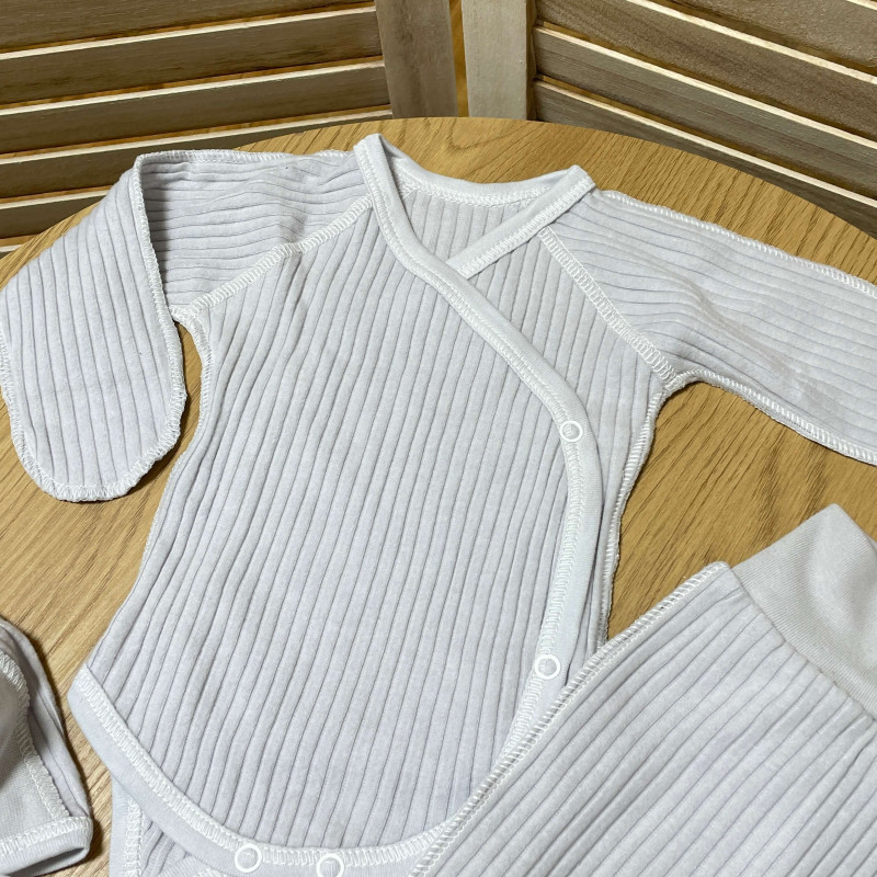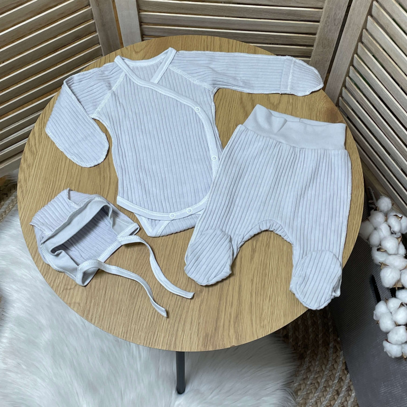 Комплект новонародженому в рубчик боді, штанці, шапочка