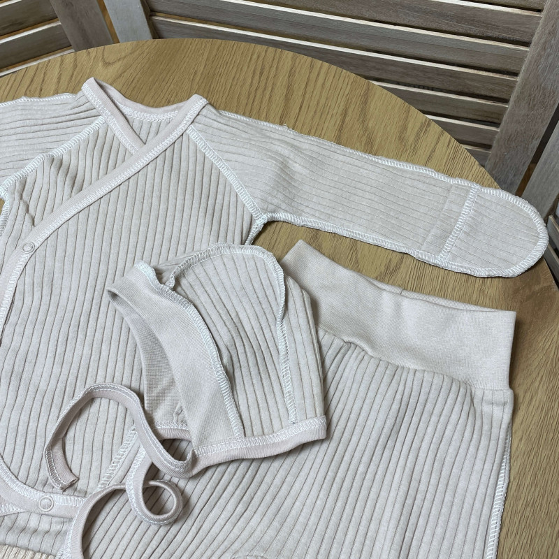 Наш комплект виготовлений з найкращих матеріалів, що дбають про ніжну шкіру малюка та забезпечують комфорт протягом всього дня. Рубчик та боді мають унікальний рубчастий дизайн, який додає особливий шарм вашому маляті. Штани забезпечують вільний рух, не стискуючи дитину, і мають комфортну посадку на талії. Шапочка завершує образ та додає затишку та тепла.