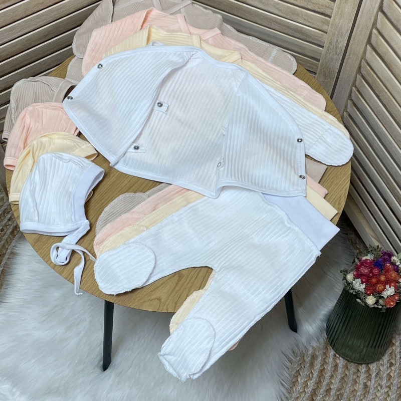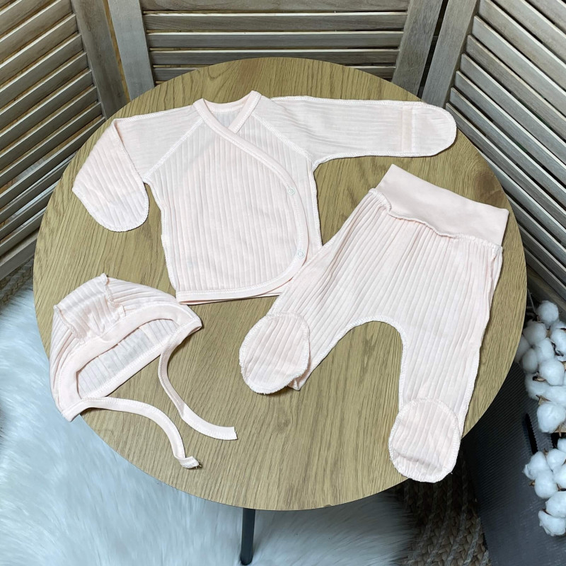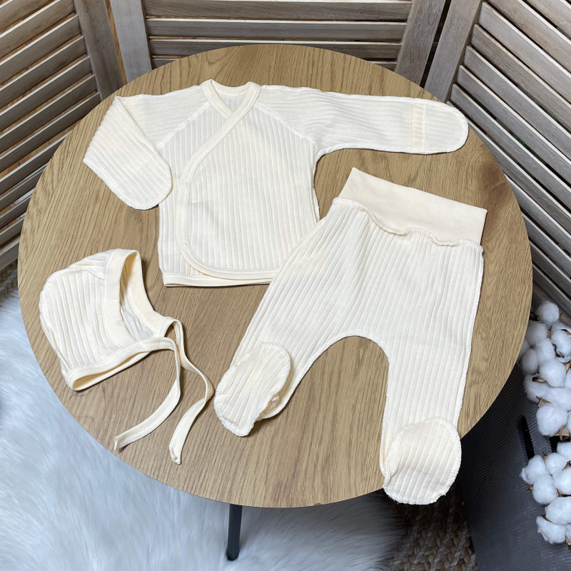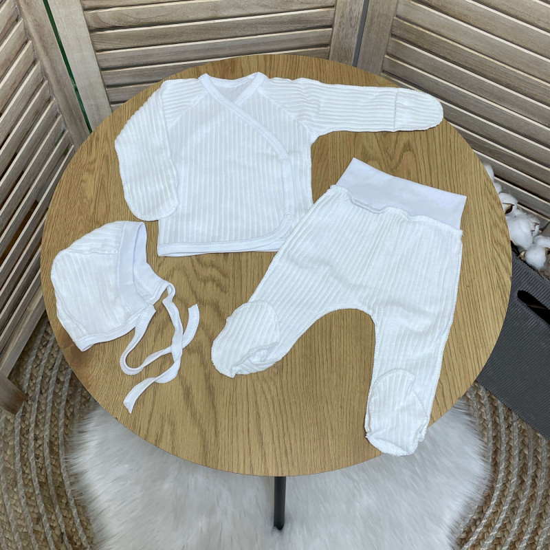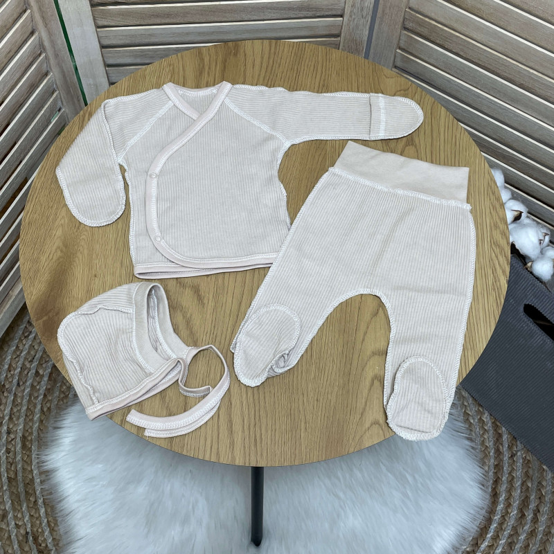 Комплект новонародженому в рубчик льоля, чепчик, повзунки