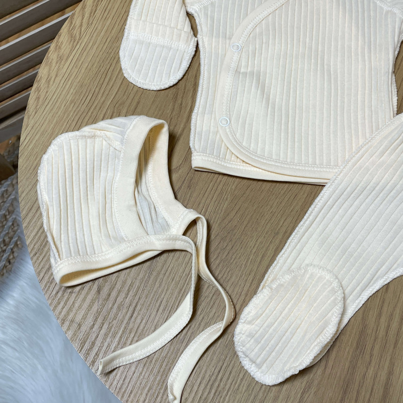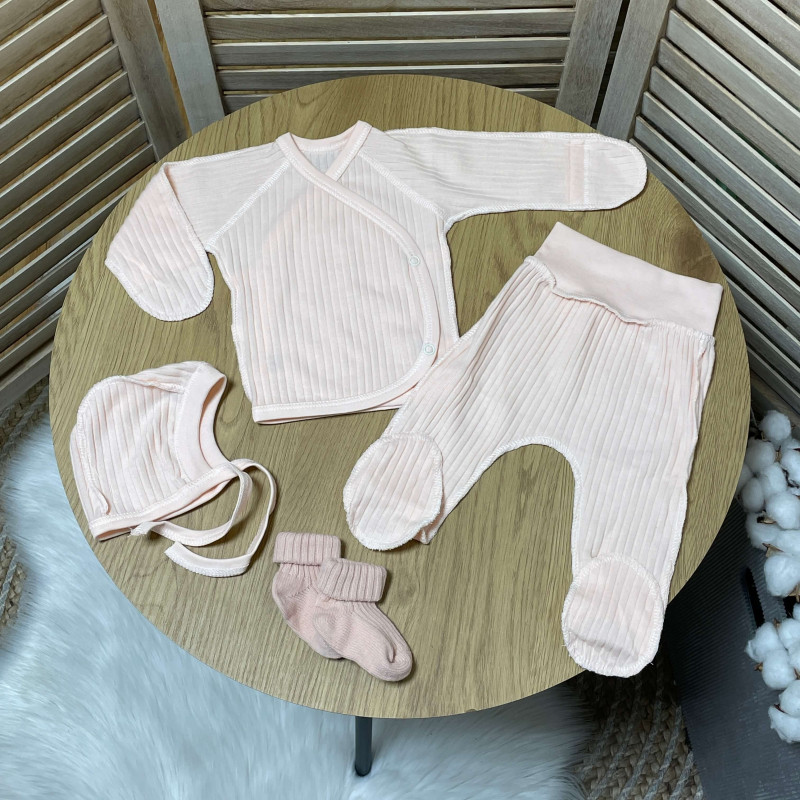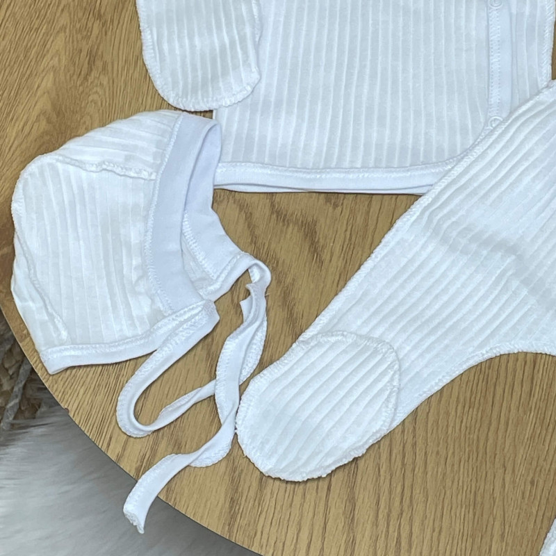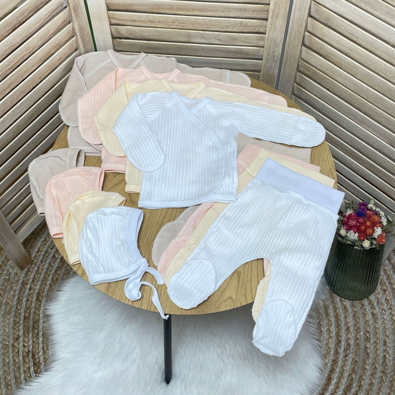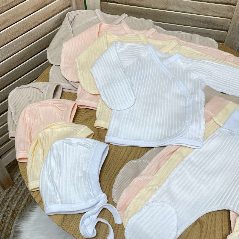 Комплект новонародженому в рубчик льоля, чепчик, повзунки