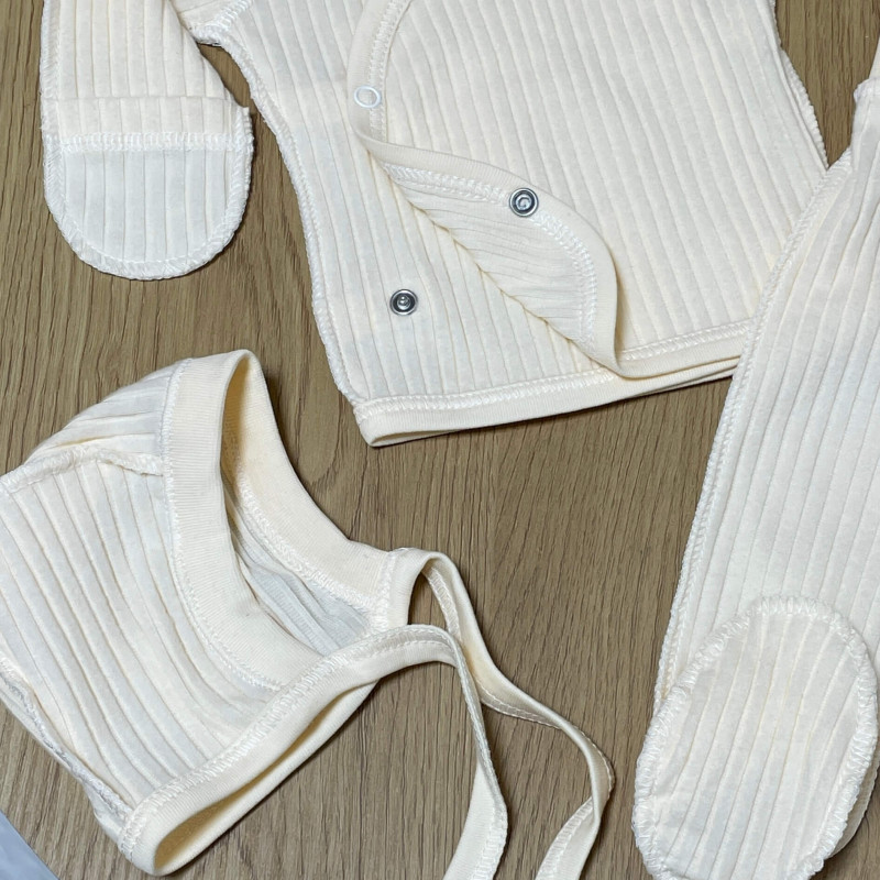Ласкаво просимо до нашого чудового комплекту для новонароджених - розпашонк, шапочка на завязках та повзунки!