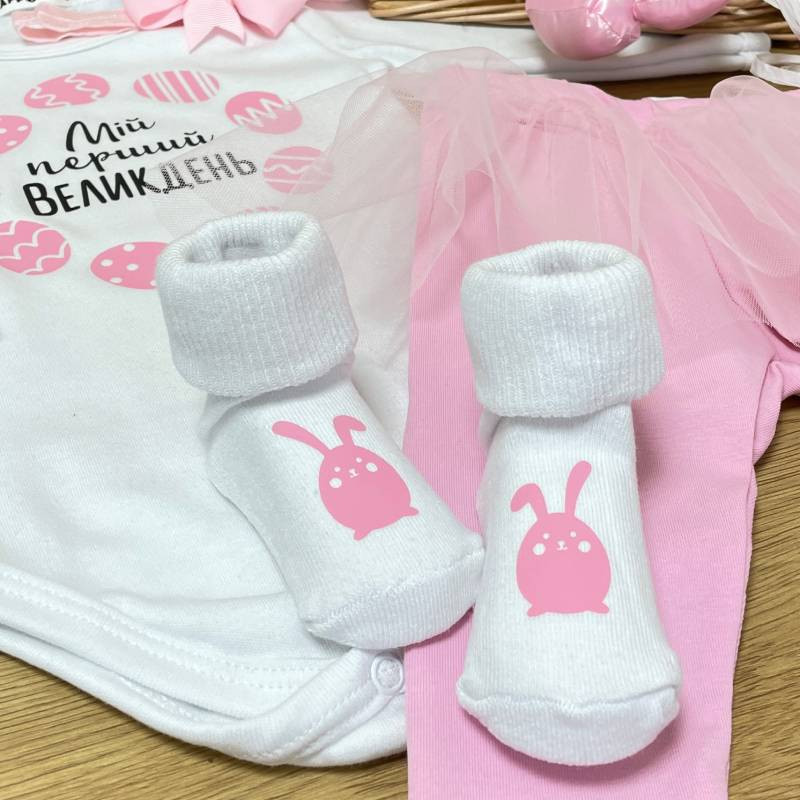Замовте комплект "Перший Великодній кошик" уже сьогодні, щоб ваша маленька дівчинка виглядала неперевершено цього Великодня! Цей комплект не тільки забезпечує комфорт вашому малюку, але й додасть яскравих барв у ваші великодні спогади.