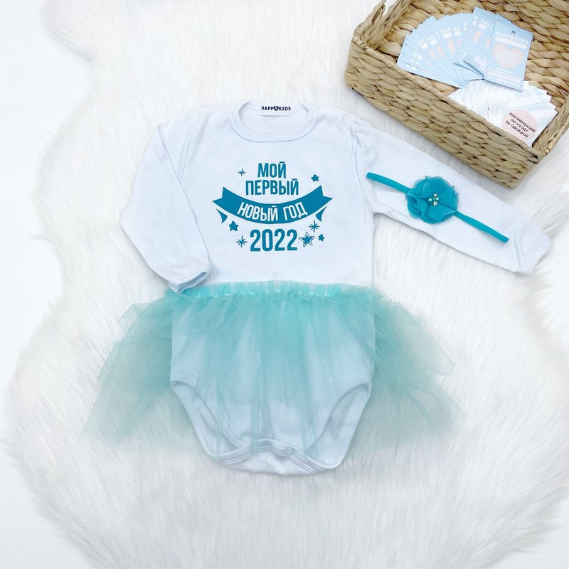 Новорічний комплект для новонародженої дівчинки та хлопчика з написом на вибір ви можете в нашому інтернет-магазині одягу для всієї родини - "HappyKids".