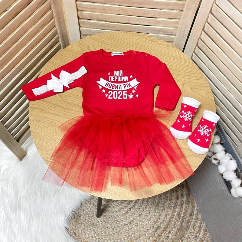 Костюм новорічний для дівчинки боді-сукня "Мій перший новий рік 2026" емблема