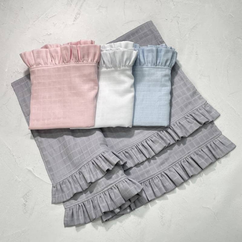 Плед мусліновий з рюшею – поєднання натуральності, турботи та естетики. Це більше, ніж просто ковдра – це символ затишку, безпеки й тепла для вашої дитини з перших днів життя.