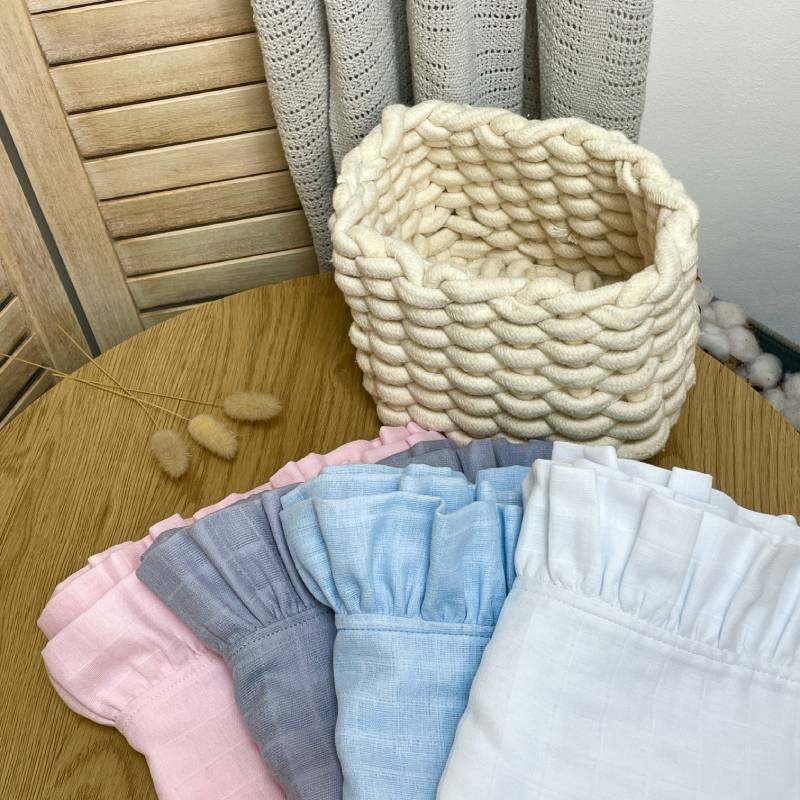 Подаруйте дитині відчуття затишку з нашим мусліновим пледом з рюшею – стильним та практичним аксесуаром, який стане незамінним у щоденному догляді. Виготовлений з 100% натурального мусліну, цей плед поєднує в собі м’якість, дихаючі властивості та естетику.