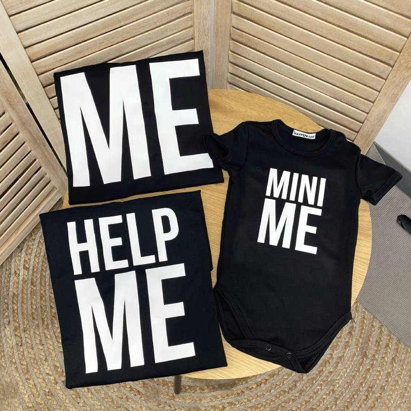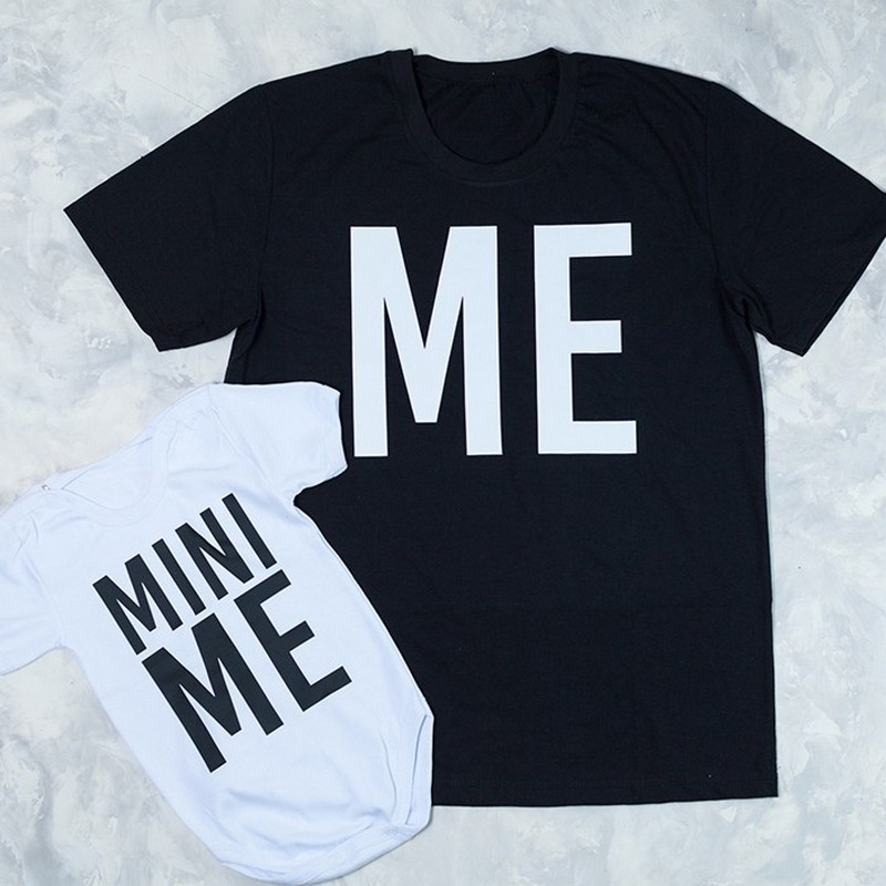Стильний сімейний набір футболок для тата й сина з креативним принтом "ME – Mini ME". Ідеальний вибір для спільних прогулянок, фотосесій або як подарунок.