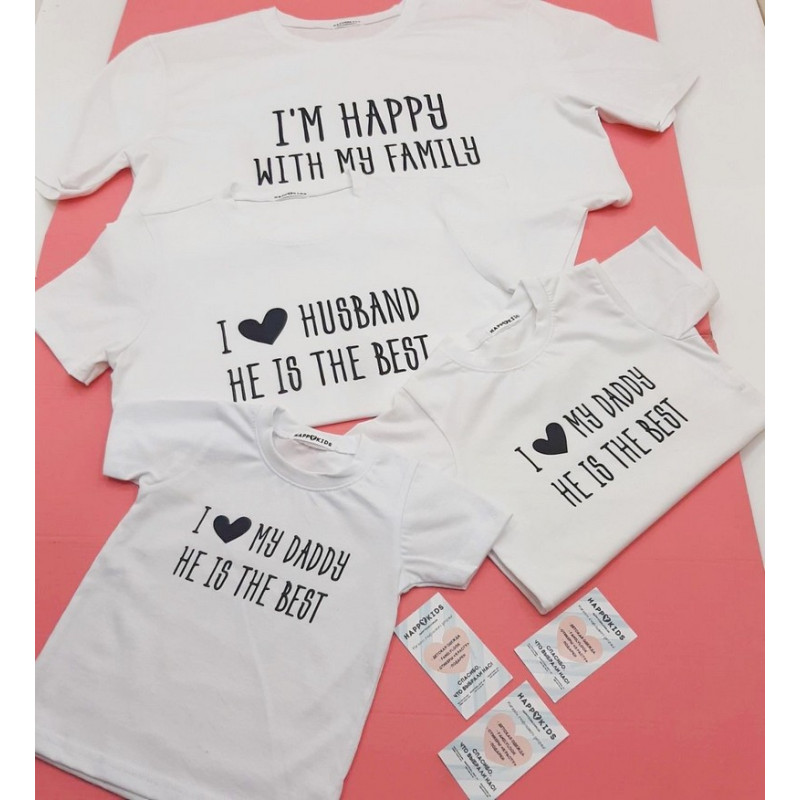 Створити свій набір футболок з написом на вибір ви можете в нашому інтернет-магазині одягу для всієї родини - "HappyKids".