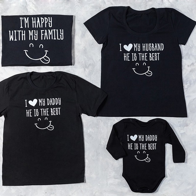 Комфортні футболки в одному стилі з оригінальним написом найкращий вибір для всієї родини ідеально підходить одяг на перший день народження дитини. Також чудова ідея для сімейної фотосессії або родинного свята.