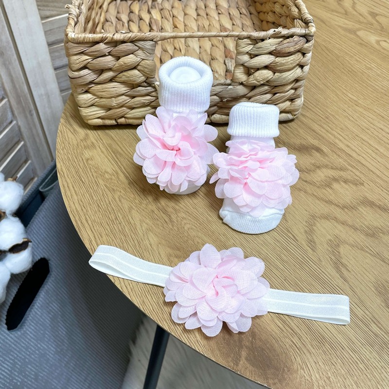 Ніжні та милі святкові шкарпетки з ніжною квіточкою. Пов'язка на резинці прикрасить будь-яку маленьку дівчинку. Ідеально поєднується з боді та іншими товарами для малюків.