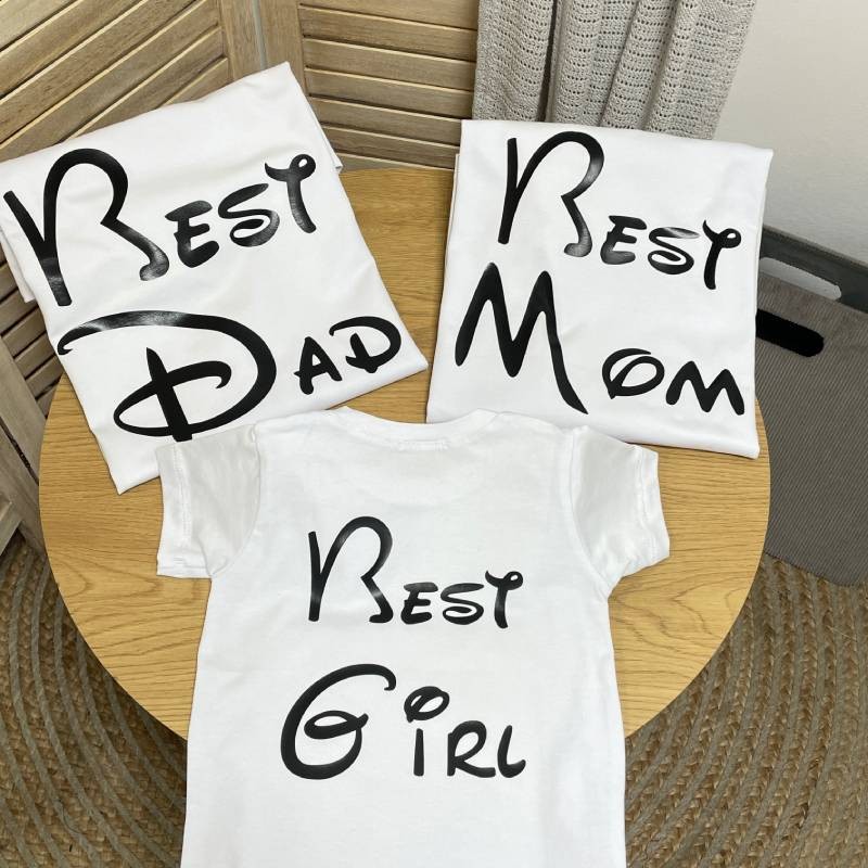 Стильний сімейний набір футболок із романтичними написами, що символізує любов і єдність родини. Ідеальний варіант для свят, фотосесій чи як зворушливий подарунок.