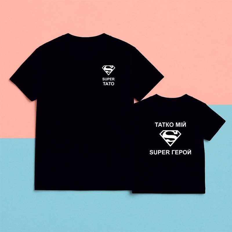 Набір футболок з написом "Super тато/татко мій супергерой"