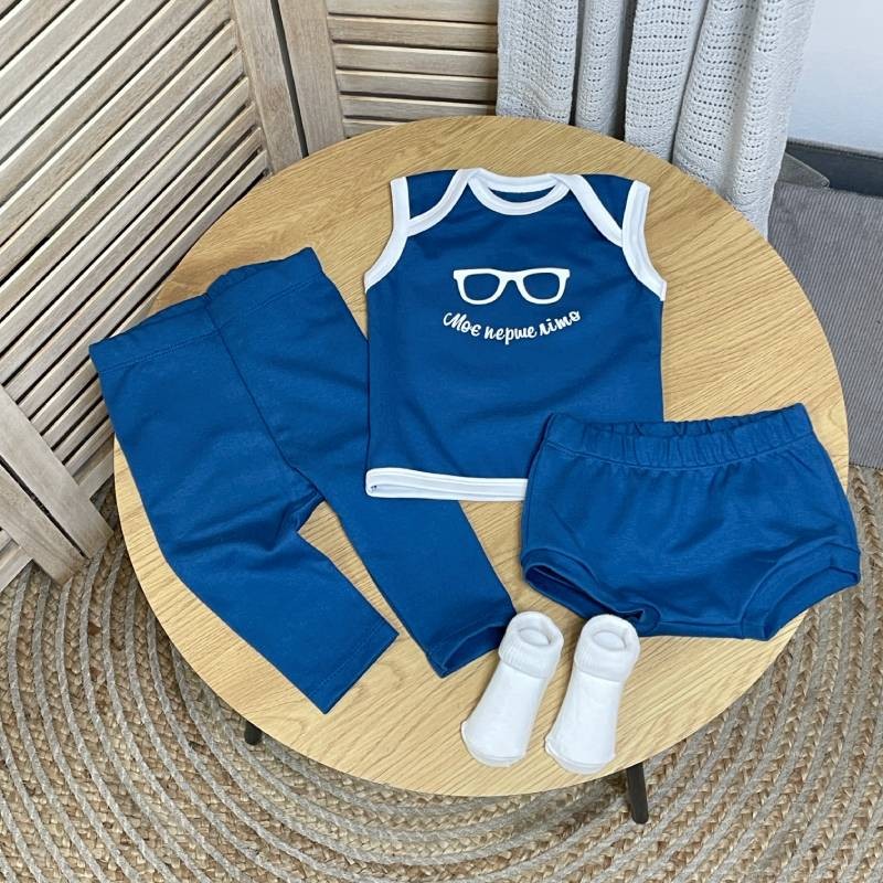 Ніжний та стильний літній набір для новонароджених, створений для максимального комфорту в теплу пору року. Ідеально підходить для щоденних прогулянок, фотосесій або як перший легкий гардероб для малюка.