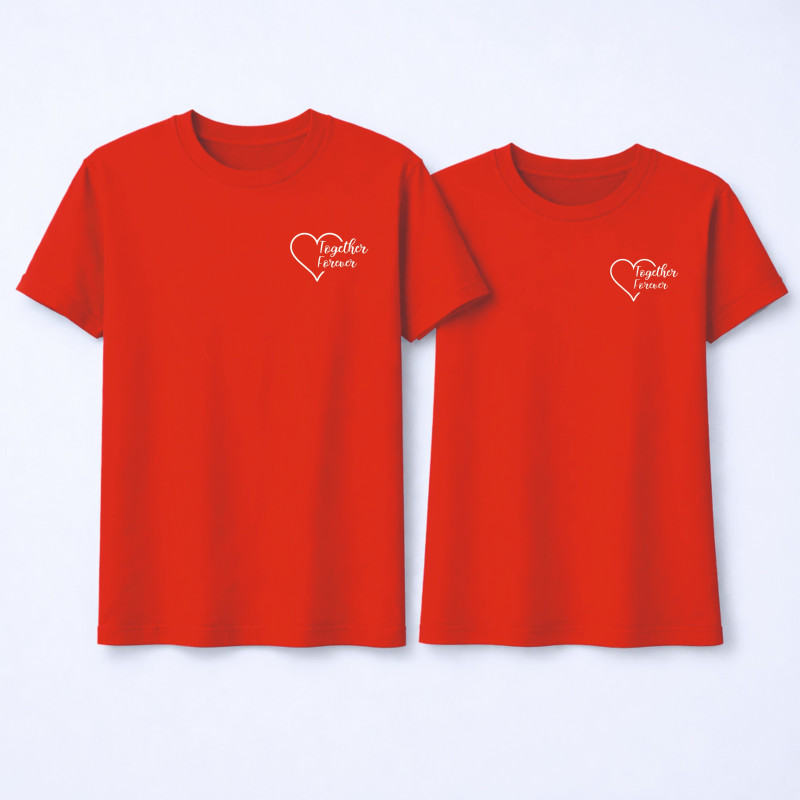 Дизайн: парні футболки з написом “Назавжди разом”, виконані в мінімалістичному стилі; ідеально підходять для створення couple look або family look