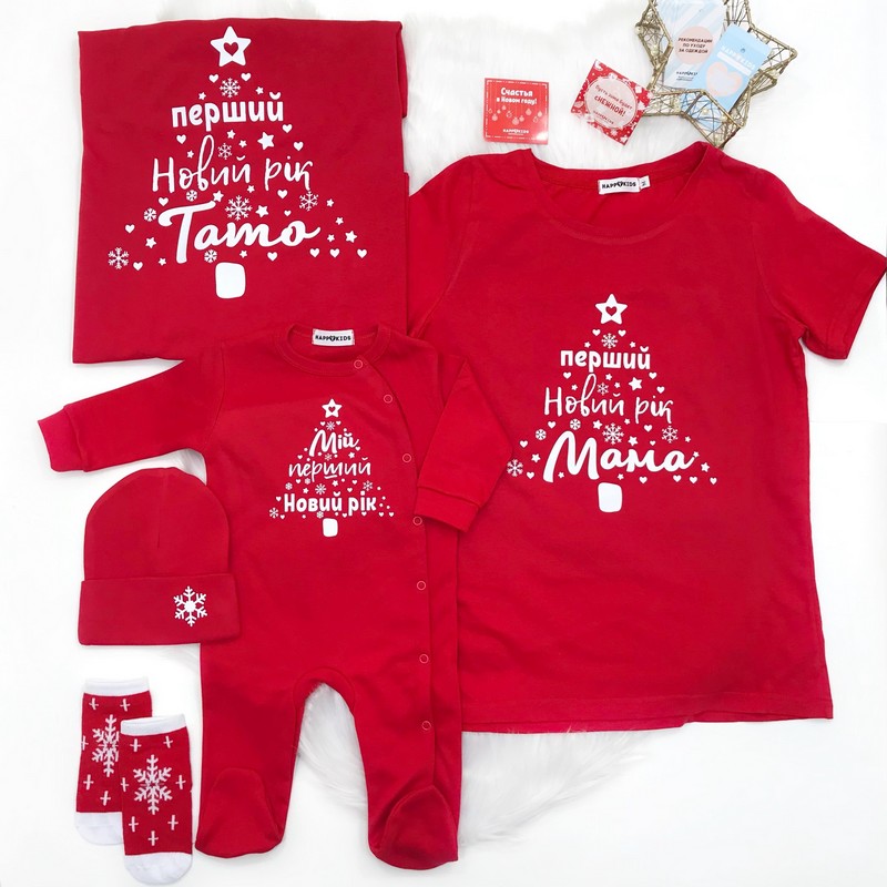 Набір сімейних новорічних футболок "Перший Новий рік Мама, Папа" зі сліпом