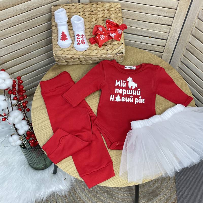 Призначення: новорічний боді для новонародженого, святковий одяг на перший Новий рік, ідея подарунка немовляті, новорічна фотосесія