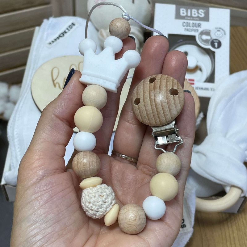 - Силіконовий тримач для пустушки: Зручний та безпечний тримач, який завжди на місці і не дає пустушці загубитися.