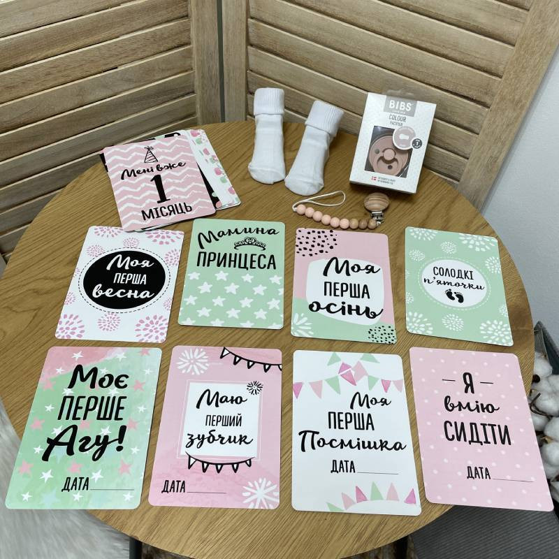 Перші моменти життя малюка безцінні, і цей подарунковий набір для новонародженої дівчинки допоможе їх зафіксувати у найніжніших та найчарівніших кадрах. Завдяки стильним карткам для фото та гармонійно підібраному одягу чи аксесуарам, кожен важливий етап зростання малюка можна зробити незабутнім.