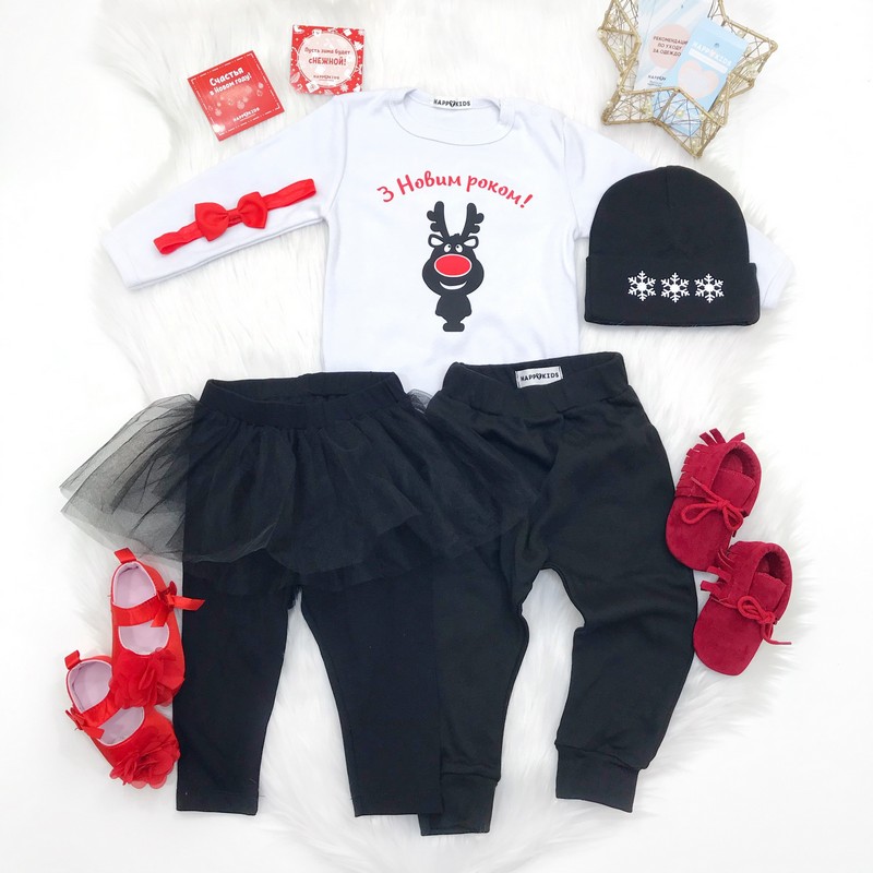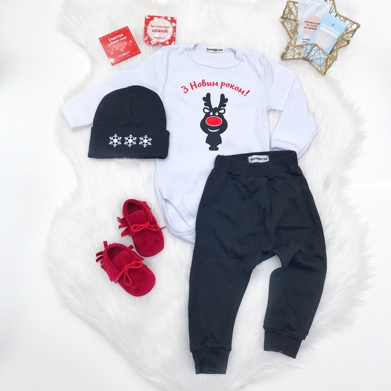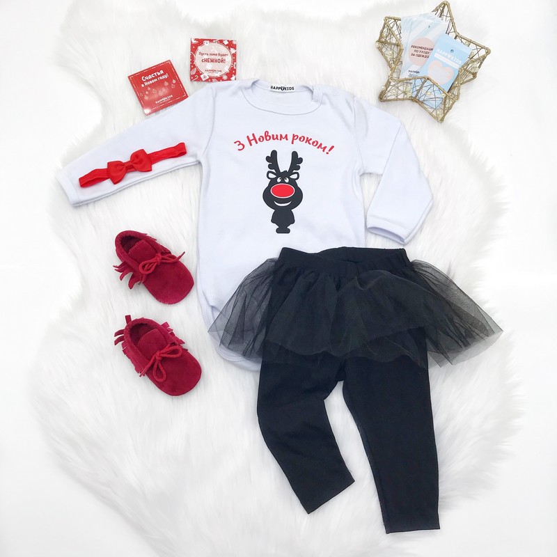 Боди ребенку на новый год "Олень красный нос" нарядный универсальный боди подойдет мальчику и девочке. Дополняй любыми аксессуарами на свой вкус и создавай свой неповторимый новогодний образ.