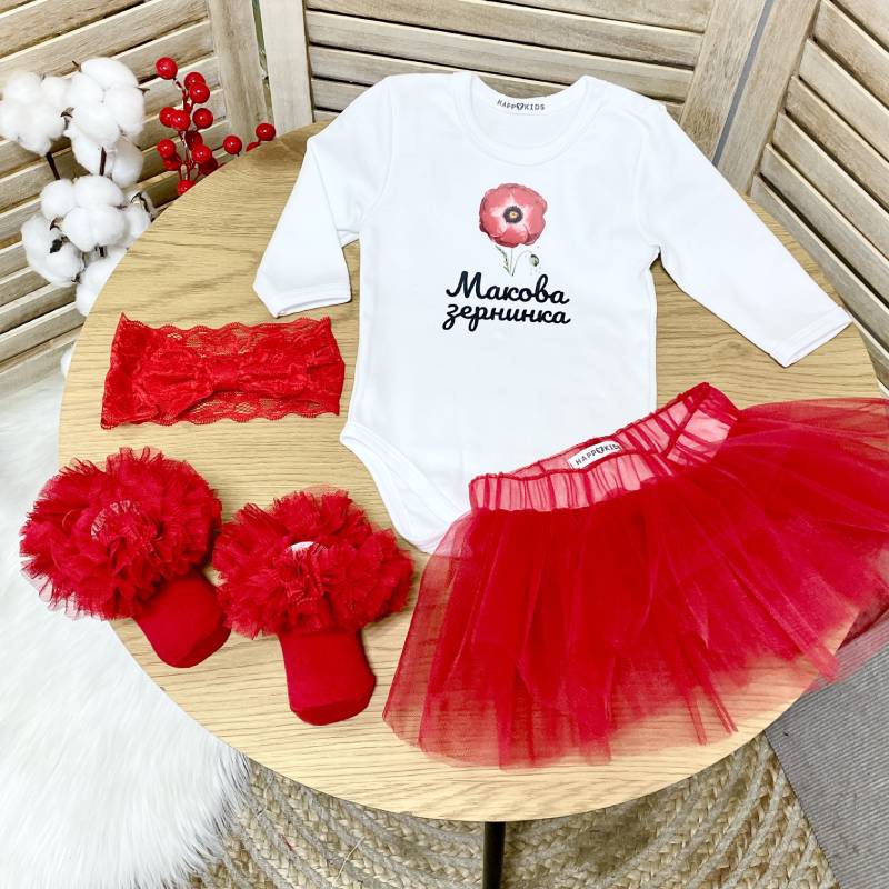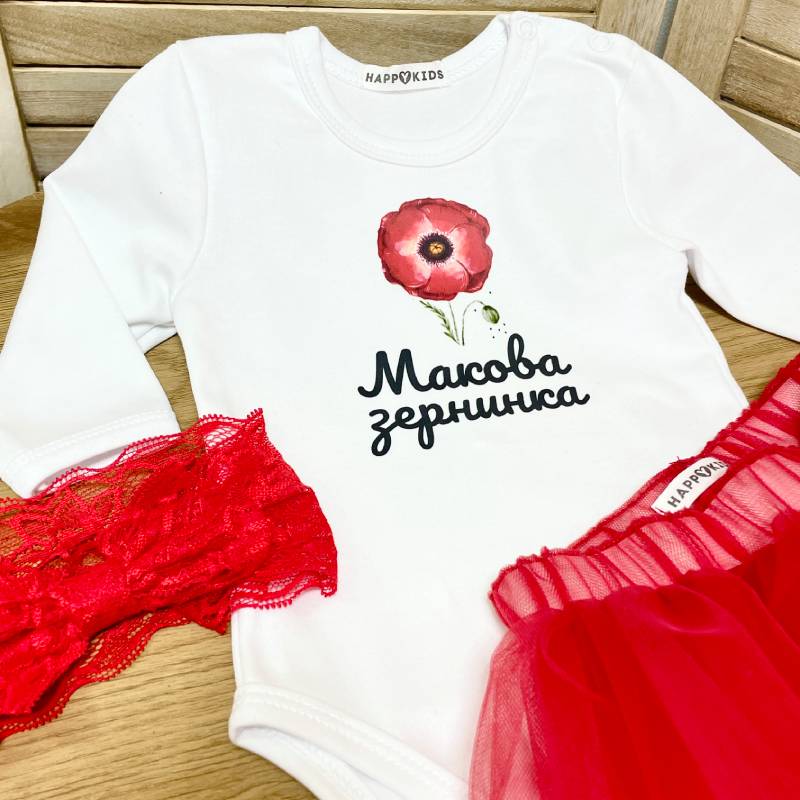 Дизайн: боди для девочки с надписью «Маковое зернышко», минималистичный и нежный принт в гармоничных оттенках.
