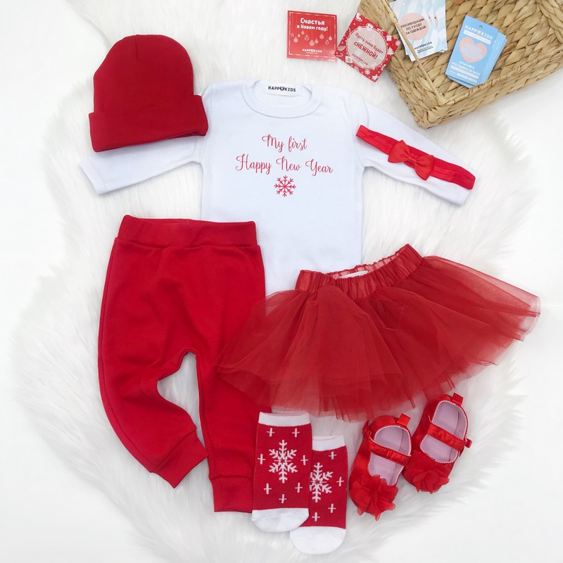 Нарядный универсальный боди подойдет мальчику и девочке. Дополняй любыми аксессуарами на свой вкус и создавай свой неповторимый новогодний образ.