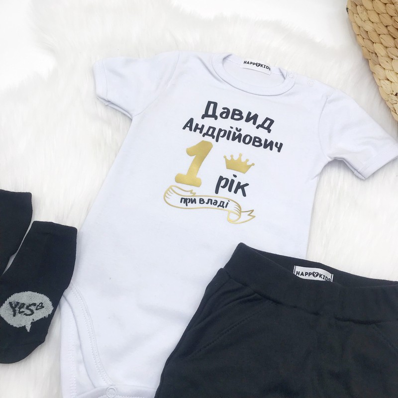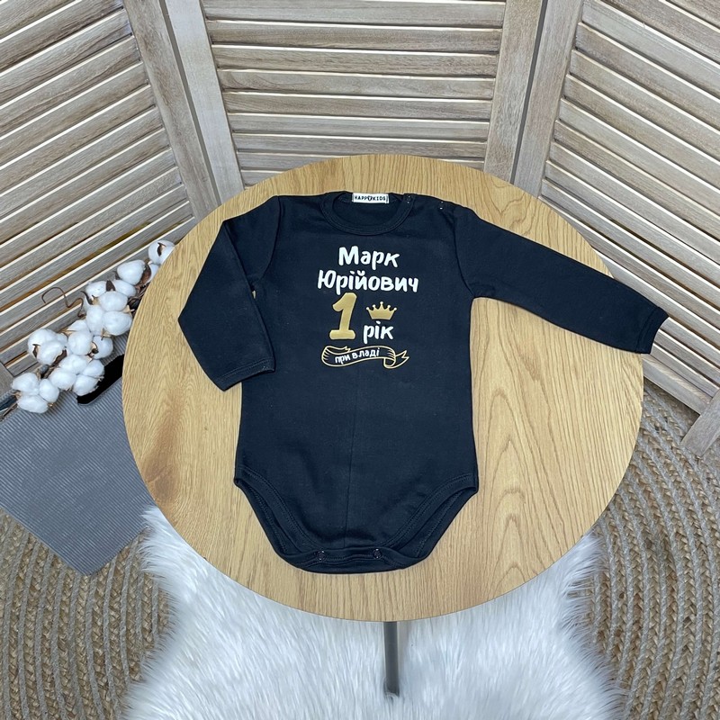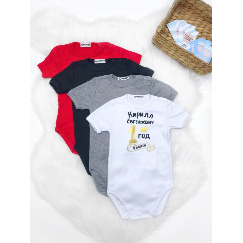 Качественные бодик для мальчика с оригинальной надписью - прекрасный выбор на первый день рождения, а так же подойдет на праздник или фотосессию.