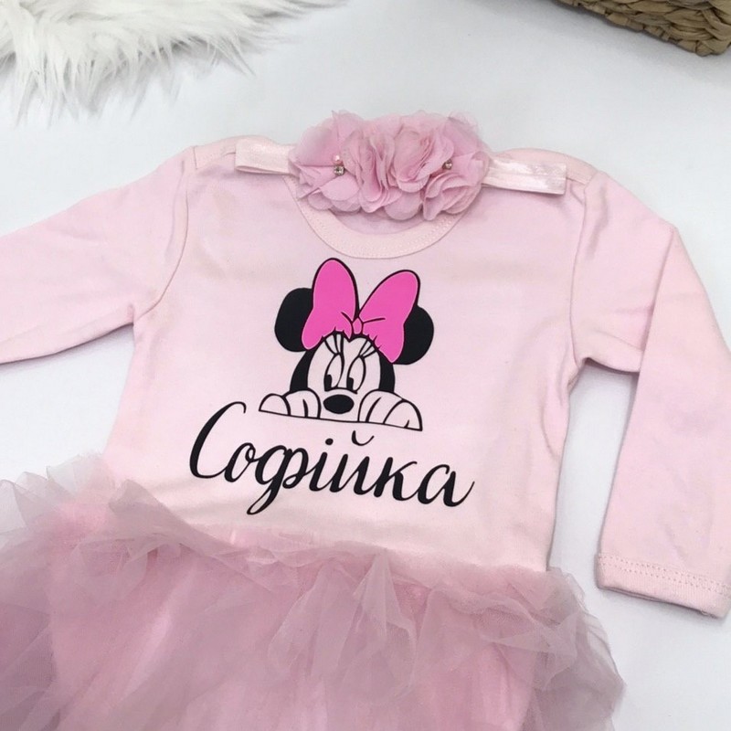 Оригинальный боди для маленькой принцессы с именем и Минни маус – можно приобрести в подарок как новорожденной девочке так и на первый день рождения дочери