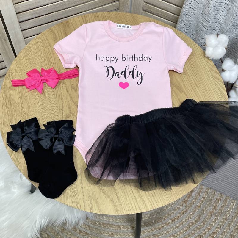 Наш боди с надписью "Happy Birthday Daddy" и милым сердечком – именно то, что нужно для особого момента. Идеален для новорожденных и малышей до 18 мес. Сделан из мягкого 100% хлопка, нежный к коже ребенка. Прекрасно смотрится на фото – сохраните воспоминания на всю жизнь.