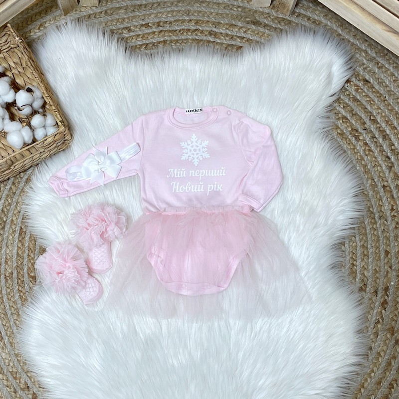 Нарядный универсальный боди подойдет новорожденной девочке или ребенку к году. Дополняй любыми аксессуарами по своему вкусу и создавай свой неповторимый новогодний образ.