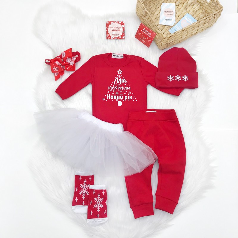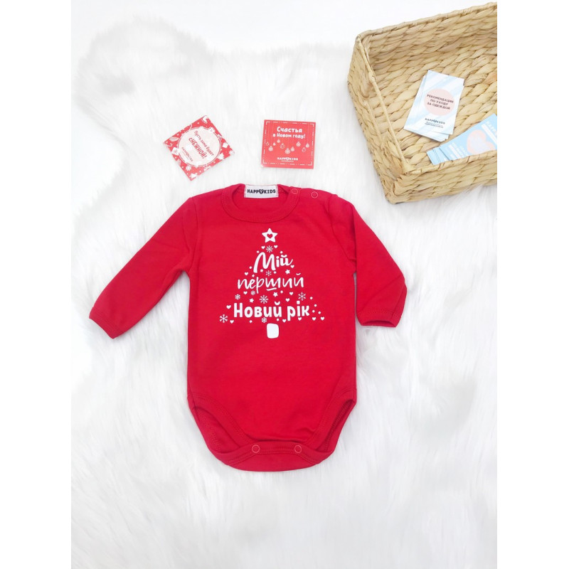 Особое торжество наряду придает надпись на украинском языке, расположенный в виде елки. Боди выполнен из высококачественного, 100% хлопка, приятно к телу, и не раздражает нежную кожу малыша или малыша.